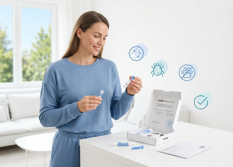 Einfach und bequem: Die Blutentnahme erfolgt ganz unkompliziert zu Hause – mit dem mitgelieferten Testkit und klarer Anleitung.