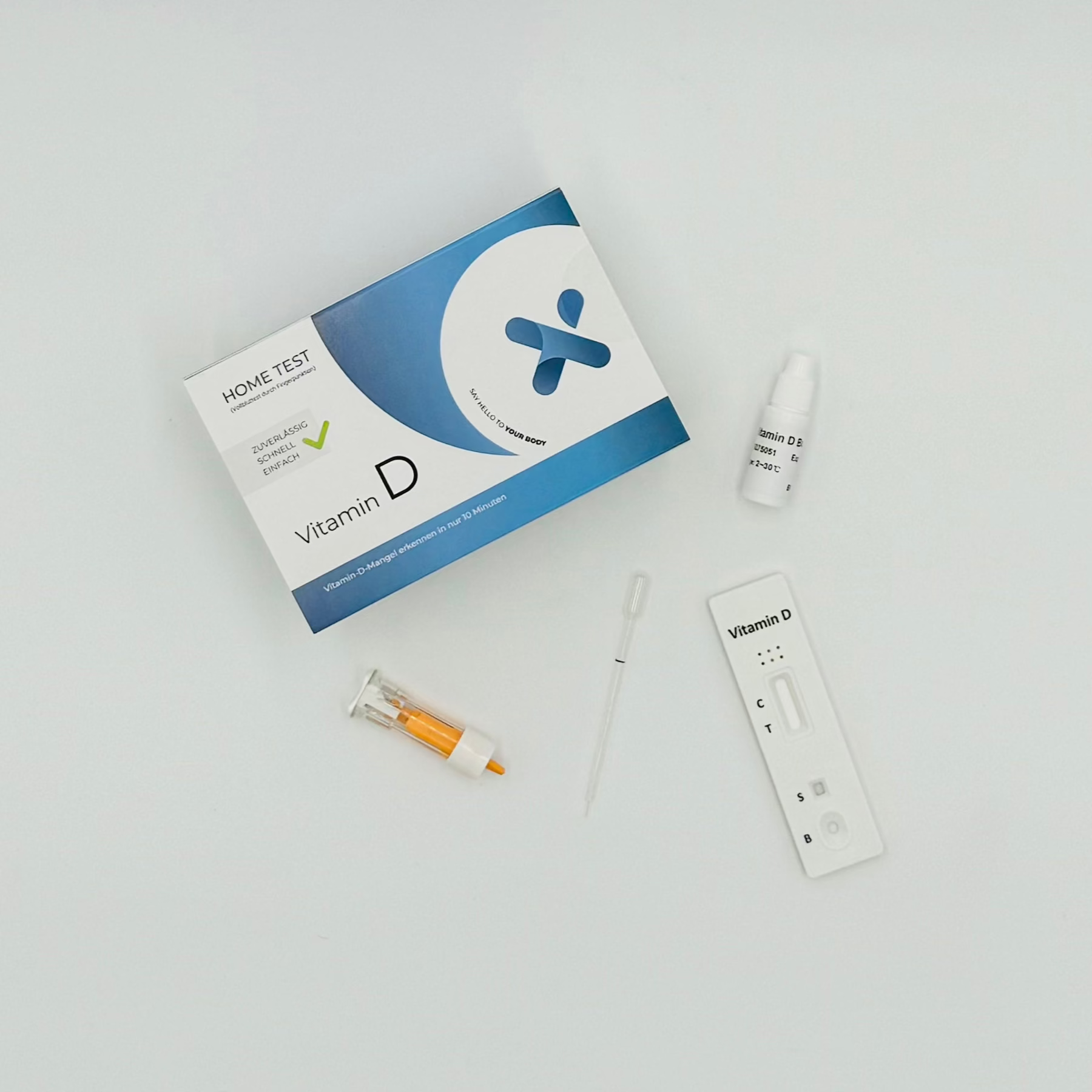 Der Vitamin-D-Selbsttest enthält folgenden Lieferumfang: